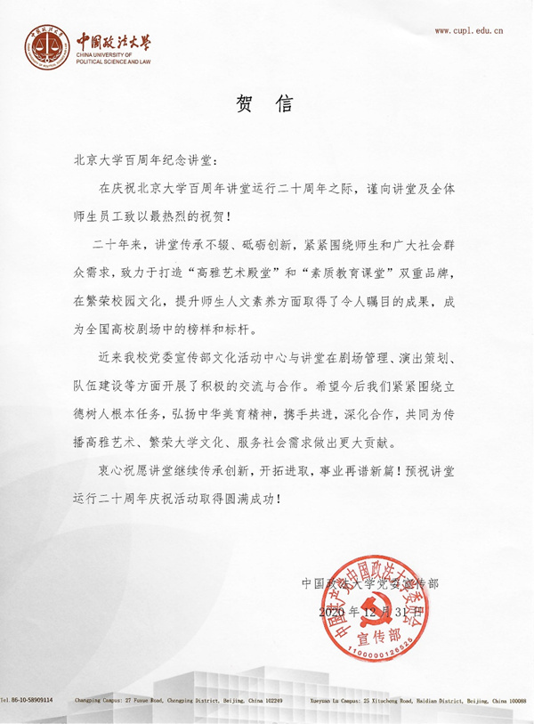 2020年适逢北京大学百周年纪念讲堂运行20周年,二十年来,讲堂与众多艺术家和艺术团体携手,打造出“高雅艺术殿堂”和“素质教育课堂”的双重品牌。