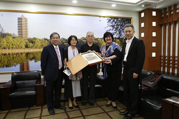 原常务副校长迟惠生、柯杨向乐团赠送纪念品