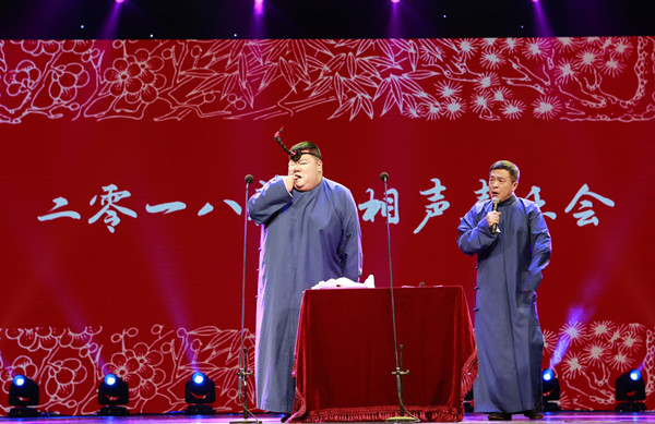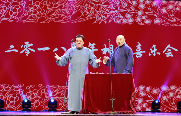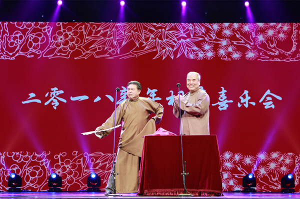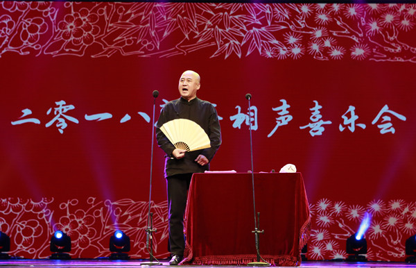 12月30日晚,2018新年相声喜乐会在百周年纪念讲堂观众厅欢乐上演,多位相声演员齐聚一堂、联袂献艺,为观众带来一场雅俗共赏的喜乐盛宴。传统与现代共冶一炉,包袱与笑料抖落不停,让观众感受到相声“说学逗唱”的魅力,体味到人生千姿百态的丰富。