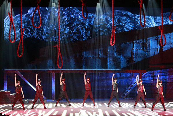 与先前京剧版的《大钊先生》相比,音乐剧版大胆全部采用现代音乐的方式,包容度与表现力更具层次,与情节的契合度也进一步提高。在舞蹈编排上,音乐剧更加注重人物形象的塑造,正反势力对比鲜明。围绕绞刑架,编导设计的一群刽子手的舞蹈别出心裁。高大的刽子手全身穿着漆黑的衣服,同时动作上伴有肢体变形的压迫感。每一个拳头的抬落、每一个跌倒爬起、每一次力量与支撑都是强有力的舞蹈语言。
