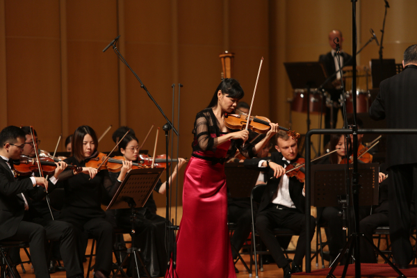 音乐会以马友道作曲、陈兆荣演奏的《d小调长笛协奏曲》开篇,展示了斗志昂扬的生活态度。随后,由杜咏作曲、刘蔓演奏的大提琴协奏曲《丝路音画》是世界首演,以一个旅人的视角阐述了游丝绸之路的恢宏景象;温展力作曲、周俣辰演奏的《却是归鸿不能语》,是较为少见的巴松协奏曲,悠扬起伏的旋律描绘了大鹏展翅游翔蓝天的场景;黄安伦作曲、Alexander Suleiman演奏的《敦煌古曲四首》是大提琴版本世界首演,以交响乐的方式改编了敦煌音乐风格的中国古曲,颇具特色。音乐会在陈钢创作的小提琴曲《阳光照耀着塔什库尔干》中走向尾声,这首曲子取材于新疆塔吉克民族的音乐素材,具有浓厚的民族风情,小提琴演奏家黄滨通过多种演奏技巧,让观众仿佛置身于草原,感受新疆人民的热情奔放。