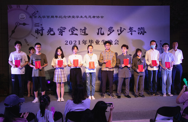 5月21日晚,百周年纪念讲堂学生志愿者协会2021毕业生晚会在讲堂四季庭院温情举办。晚会以“时光穿堂过,几多少年游”为主题,承载了志愿者们在大房子里穿堂而过的青春时光,相信这一场充满爱与温暖的聚会会成为糖果们燕园生活中欢乐与感动交织的难忘回忆。当晚,讲堂管理部主任马冬妮、副主任李春亮和讲堂干部员工代表也来到现场,与同学们同叙离情,共话未来。