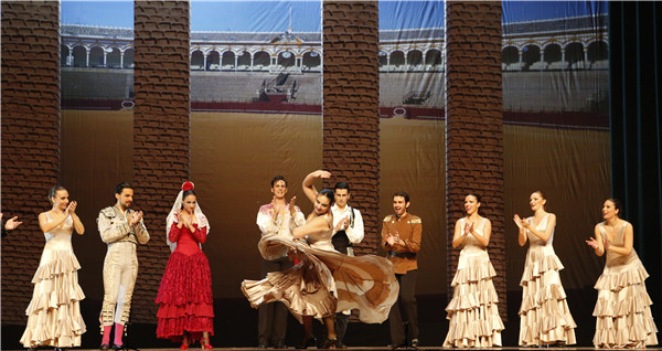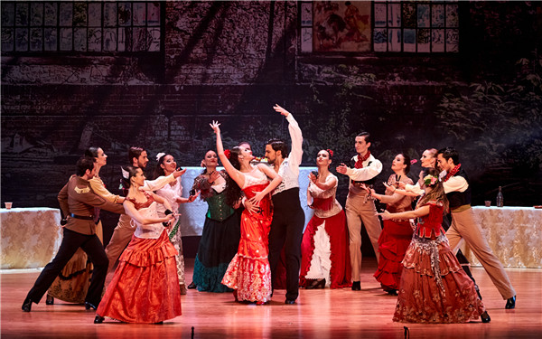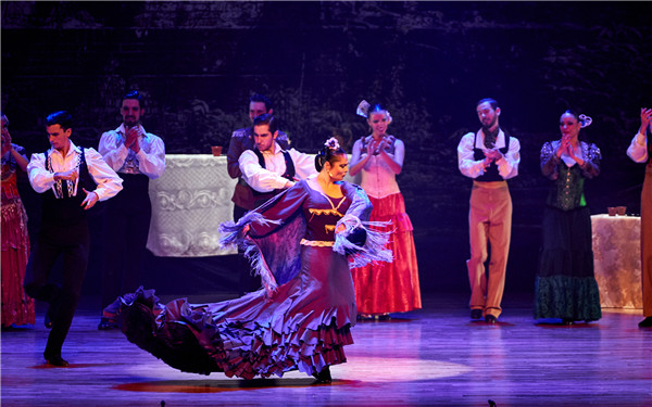 舞台上,伴随吉他和手鼓急促多变的节奏,那气势犹如狂风骤雨席卷而来,艺术家们也不断变换舞步,用踏脚、拍手、扭身、旋转等舞蹈语汇,表现了一个激情洋溢、曲折动人的爱情故事,刻画了一位“我欲爱则爱,我欲恨则恨”的女性形象,诠释了爱与自由这一永恒的主题。配之以现代化的舞美、华美的灯光与精致的服装,给观众带来全新的视听享受。踢踏声、拍手声、响板声、吟唱声在此汇聚,舞蹈的魔力、音乐的魅力、戏剧的张力在此迸发。每一袭舞动的裙摆、每一段动感的音乐、每一个优美的舞姿,都化为舞台上的艳丽与绚烂,演绎着西班牙艳阳下的奔放、欢愉与悲凄。