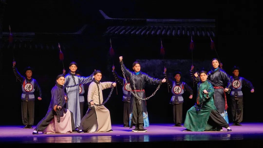 “北洋水师全军覆没”,导演再次运用京剧“一步千里”的虚拟手法,时空转换,从大喜快速转入大悲。武戏导演王振鹏充分发挥贵州京剧院武戏看家的特色,把倭寇上岸强攻炮台、清兵浴血奋战的情节,通过精彩的“开打”火爆呈现,最终以清军伤亡殆尽惨烈场面收尾,再一次激发了观众的爱国热情。