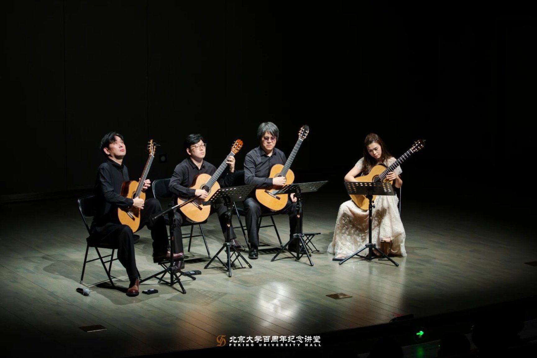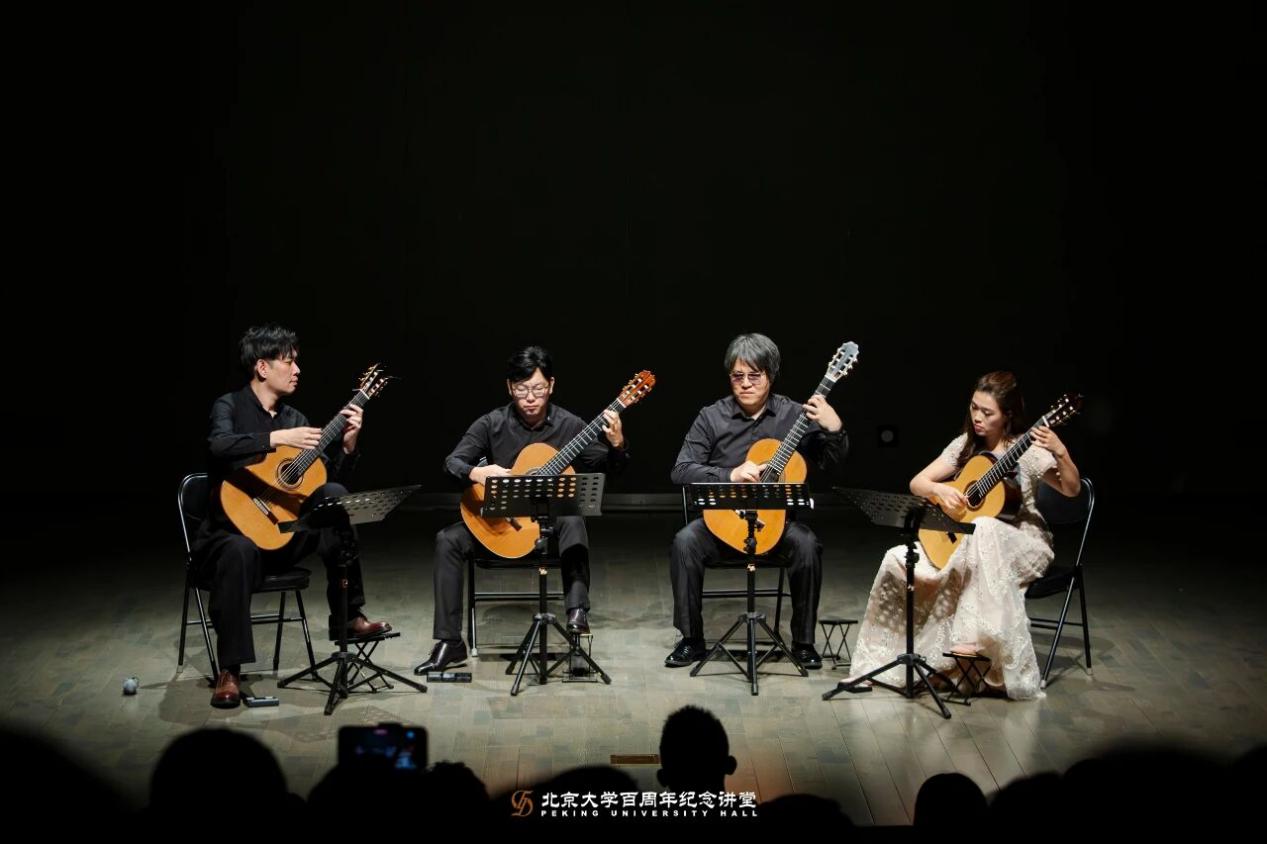 11月29日晚,80分钟环游地球系列音乐会之志龙古典吉他四重奏专场音乐会在讲堂李莹厅上演。音乐会以法雅《魔法师之恋》开启西班牙风情之旅,随后呈现徐昌俊《剑器》的中国气韵。下半场则通过《班图》《海的回声》《化装舞会》以及《匈牙利狂想曲第2号》等曲目,展现了从南美到欧陆的多元节奏与经典旋律。四位吉他手以精湛技艺带领观众完成了一场跨越东西方的音乐之旅,展现了古典吉他的丰富表现力。