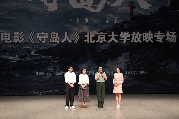 6月26日,由八一电影制片厂、北京大学党委宣传部、北京大学学生工作部、北京大学会议中心主办的“电影《守岛人》北京大学放映专场”活动在北京大学百周年纪念讲堂成功举行。《守岛人》导演兼总编剧陈力,携片中王继才妻子王仕花饰演者宫哲、小豆子饰演者张一山在影片映后与北京大学师生面对面交流。