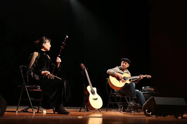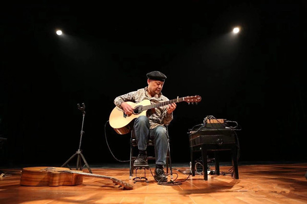 提到指弹,不得不提起岸部真明。他的指上音乐尤为层次丰富、细腻动人,他的很多曲谱成为吉他爱好者的指弹必练曲。每一个揉弦、泛音、击板都运用得恰到好处,曲风旋律优美。当晚,当流传甚广的《Time Travel》《奇迹の山》《流れ行く雲》等熟悉的旋律响起时,惊叹声与欢呼声响彻整个观众厅。每个人心中都深藏着一份关于音乐的记忆,正如有人这样说:“岸部真明太可爱。在Time travel中做了个梦,醒来便成了现在的样子。”“活着做一朵流行的云,倒下成一座奇迹的山。”随后,《夜明け前》《树氷の辉き》《November》《Power of Thumb》等风格各异而明快带感的曲子,也让观众的心绪随着音乐起舞。而当哀婉悠长的二胡配上轻柔舒缓的吉他,《花》《奇迹の山》等经典作品得到了全新的演绎。