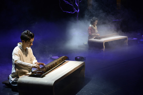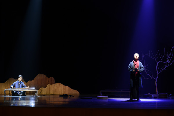 舞美设计也颇具禅意,台上烟雾袅袅,灯光氤氲,枯树挺立于后方。都说茂盛荣华之树意示涅槃常、乐、我、净的本相;而那枯萎凋残之树则显示着无常、无乐、无我、无净的世相。琴声悠悠,松而不懈,吟猱绰注间拂去了听众心头的尘埃,使人身心俱静,无欲无求。正可谓是“鼓之者胸中光霁。八荒寂然,无尘累想”。