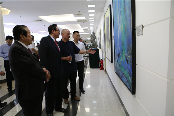 开幕式后,与会嘉宾和广大师生艺术爱好者到展廊参观,许文融向大家介绍展品,阐述自己的创作心得和艺术理念。据悉,本次许文融先生创作展将持续至5月15日,免费向全校师生开放,欢迎广大艺术爱好者们前来参观,感受“一曲高山流水”中所蕴含的中华艺术之美。