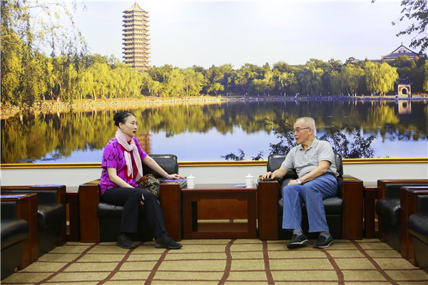 上芭辛丽丽团长(左)与北大原常务副校长迟惠生交流