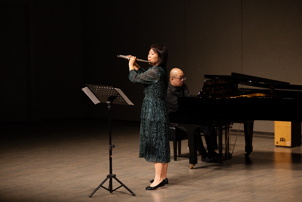 “乐韵”系列是北京大学百周年纪念讲堂与中国音乐学院中国乐派高精尖创新中心共建实践基地过程中,双方共同打造的重点美育品牌。以讲堂为舞台,双方充分资源互补,既为北大师生带来高品质艺术享受,又为中国音乐学院师生提供艺术实践和自我展示平台。当晚演出师生同台,既是教学成果的展示,又让观众感受到长笛艺术守正创新、不断发展的代际传承。依循讲演结合方式,倪一珍在演奏前为观众讲解了长笛乐器的风格特色与曲目知识,帮助观众更好沉醉在接下来的演出中。