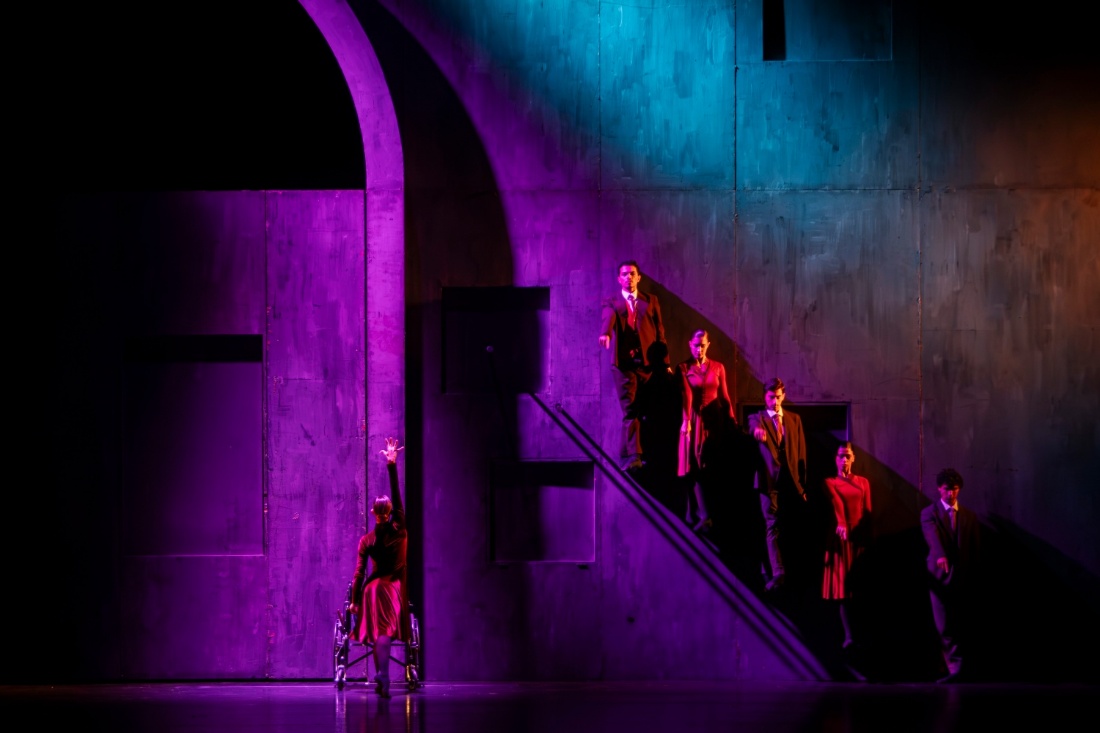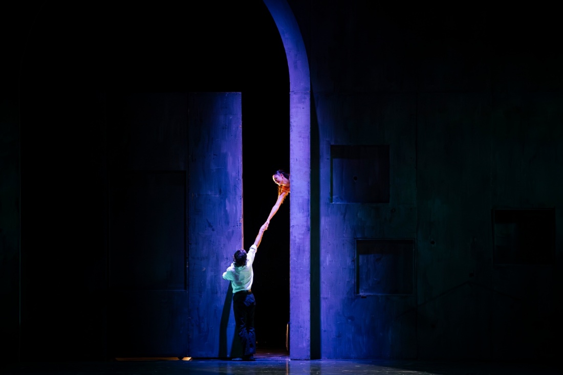 此次上演的《朱丽叶与罗密欧》不同于传统古典芭蕾,舞剧在保留普罗科菲耶夫原版音乐的同时,将故事背景置于二战结束后的意大利。编舞借鉴新现实主义电影美学,以极简的“概念化”舞台和“电影化”灯光设计重构舞台空间。一面破旧的铁皮墙贯穿全剧,既是历史的见证,也成为人物心境的隐喻。著名的《阳台双人舞》中的楼梯被改为被攀爬的城墙,寓意爱情的艰难阻隔;朱丽叶与女家教的舞段,则以床架代替把杆,象征贵族礼教与个性自由的张力。