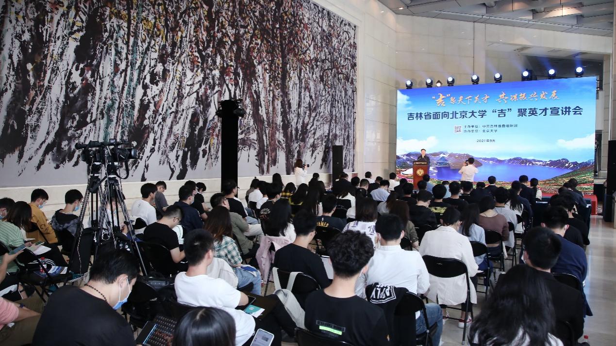 宣讲会在百周年纪念讲堂纪念大厅举行,张恩惠作主旨宣讲。他指出,当前的吉林发展势头强劲、生态环境优良,在引才用才上政策完善、保障有力,是成就事业之地,希望北大学子不负韶华、不负青春,把吉林作为奋斗圆梦之地。靖宇县委副书记、代县长吴红亮,双辽市委常委、统战部部长聂磊,吉林省发展和改革委员会综合处三级主任科员姜研三位校友代表分别发言,分享在吉工作与生活感受。