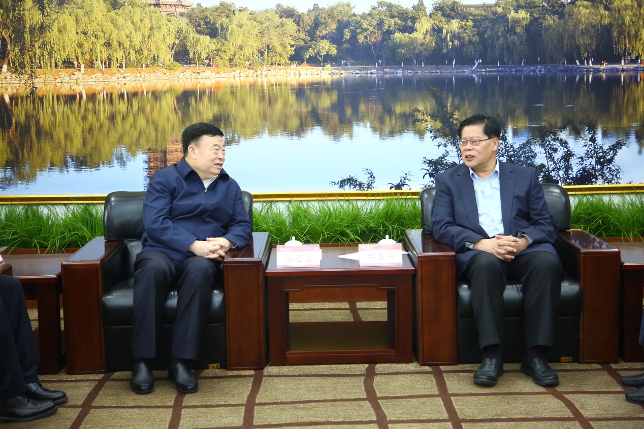 9月28日下午,吉林省委常委、组织部部长张恩惠带队到访北大,开展“吉”聚天下英才、共谋振兴发展——吉林省面向北京大学“吉”聚英才宣讲会及招聘双选活动。北京大学党委书记邱水平会见张恩惠一行,双方就进一步深化省校战略合作及选调生招录等事宜进行会谈。北大党委副书记、副校长陈宝剑,校长助理、总务长董志勇陪同出席相关活动。