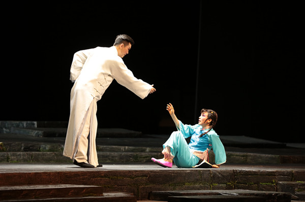 戏剧之间有着千丝万缕的联系,但在细微的表现手法上却大不相同,每一个剧种都有独特之处,“以形传神,形神兼备”。锡剧作为江苏最大的地方剧种之一,其表演基础与国剧京剧及其他剧种一样,均依靠“四功五法”,即“唱念做打”“手眼身法步”。然而,锡剧的音乐旋律和吴方言则有独特的韵味。京剧、豫剧等北方剧种,声腔高亢、气势蓬勃,多富有激情奔放的阳刚之气,具有强大的情感力度;锡剧与越剧这对姐妹剧种为南方剧种,长于抒情,声腔清悠婉丽优美动听,表演真切动人,极具江南灵秀之气。