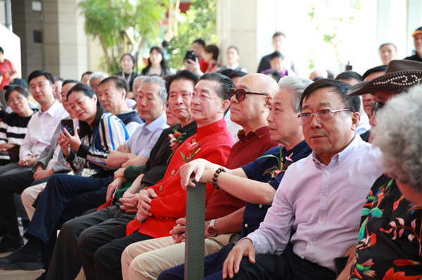 出席开幕式的领导和嘉宾有:民盟中央宣传部长曲伟,中国第一个打破世界纪录的女子跳高运动员郑凤荣,著名表演艺术家六小龄童,山水丹青国际艺术中心理事长、原北京青年报社长崔恩卿,著名京剧表演艺术家王晶华,北京市民盟副主委宋慰祖,民盟北京大学主委、市政协委员李纬,原北京市园林局副局长康德铭,原海军总医院政委杨明建,原宣武区政协副主席杨海森,陈少梅艺术研究会会长陈长智及夫人林庆萍,北京市文化发展基金会主任范存会,著名导演王荣起,共青团中央中国国际青年交流中心常务副主任王捍忠,北京市国际教育交流中心主任谷天刚,经济日报出版社副社长梁曦,北京市花卉协会负责人李建通,北京市西城区文联副主席童薇,北京市西城区美术家协会秘书长王雁儒,北京电视台《第三调解室》与《向前一步》栏目金牌律师陈旭,美国脱口秀名人北美崔哥,著名学者、社会活动家司马南,北京四中国际部校长李树明,中国书画收藏家协会副秘书长、北京国宝书画院院长赵春原,世界玫瑰大师王国良,北京中国书画协会会长焦广盛,北京中国书画协会副会长赵晶,威海市书法家协会主席单国防,著名书画家刘方亭,程茂煜、王建成、马文典、陈溪峋、杨中良、纪大年、孙若曦,著名京剧研究大家刘曾复先生女儿刘祖敬,著名京剧表演艺术家萧润增、梁幼莲、王福民、温如华、侯连英及夫人、刘金泉、毛尚科、杜镇杰,著名评剧表演艺术家高闯,著名河北梆子表演艺术家张四刚,著名表演艺术家高放、石小满、刘大刚、陈友旺,著名影视演员于又川、李大光,著名相声演员张大礼、贾旭明,中国戏曲学院教授、著名漫画家王九成,中国戏曲学院教授王占欣、张晶,艺原美术馆馆长吕以忠、北京电视台聂和平以及本次画展策展人、山水丹青国际艺术中心董事长付丹丹等社会各界名人、新闻媒体记者等二百余人。