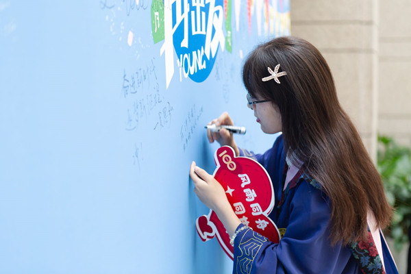 “与北大的邂逅从讲堂开始,有幸在园子里与讲堂一起度过了四年,会永远记得星空之下的讲堂!”“青春不散场!”“祝讲堂越办越好!”一句句有温度的留言,有临行前的惜别,有同窗间的鼓励,有对未知前路的无限憧憬,有对北大、对讲堂的真挚祝福。“心中有信仰,肩上有担当,脚下有力量”“做有志气、有骨气、有底气的中国青年”“不负时代,不负韶华”,手举牌上铿锵有力的话语,则展现了北大青年奋发新时代的精神面貌。