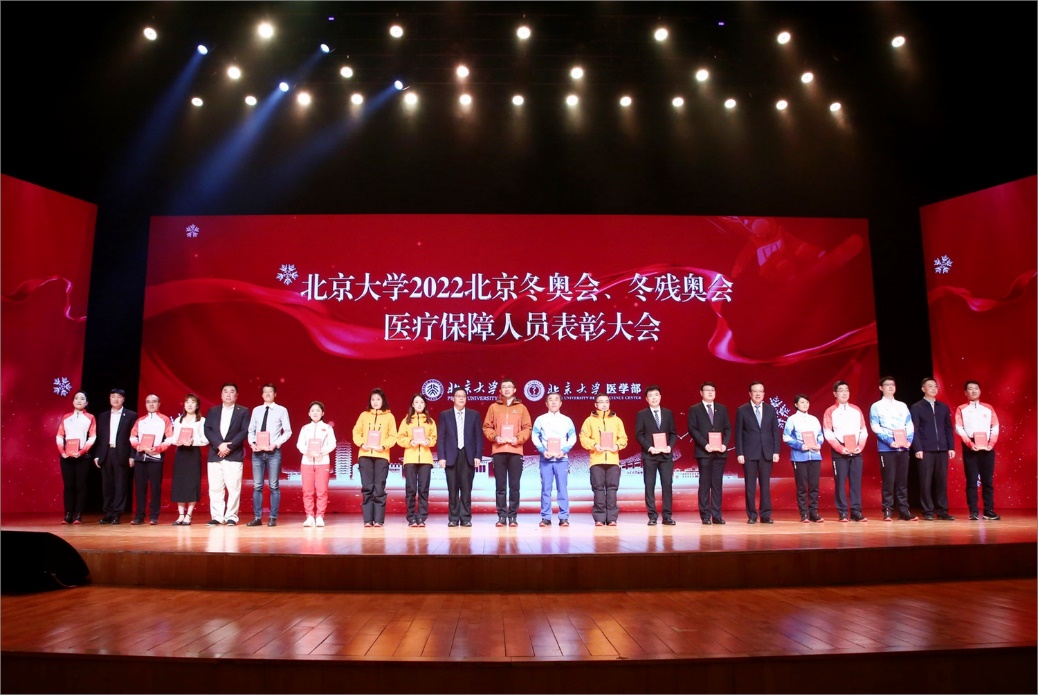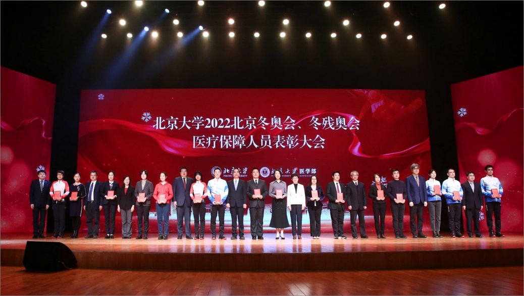 4月9日上午,北京大学2022年北京冬奥会、冬残奥会医疗保障人员表彰大会在百周年纪念讲堂举行,深入学习贯彻习近平总书记重要讲话精神,对获得荣誉的集体和表现突出的个人进行表彰。北大党委书记邱水平,校长郝平,国家卫健委卫生应急办公室二级巡视员李珣,北京冬奥组委运动会服务部部长于德斌、运动会服务部医疗服务处处长齐士明等领导嘉宾出席大会。北大常务副校长龚旗煌,常务副校长、医学部主任乔杰,党委常务副书记、副校长、医学部党委书记陈宝剑,党委副书记安钰峰,党委副书记、纪委书记叶静漪,副校长王博、张平文、孙庆伟,校长助理董志勇,医学部、附属医院领导班子成员以及相关职能部门负责人,学生代表参加大会。