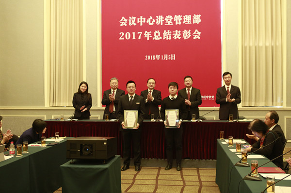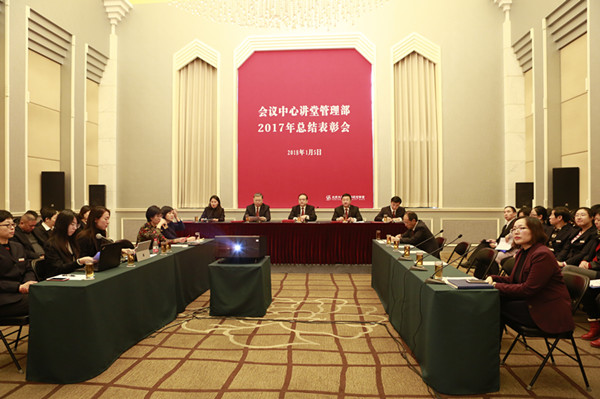 2017年是讲堂发展面临重大挑战的一年。在深入分析外界客观形势和自身发展环境的前提下,讲堂人攻坚克难,挖掘整合优势资源,用实际工作进一步诠释了“以人为本,科学管理;服务师生、繁荣文化”的现实意义,深化了“高雅艺术殿堂、素质教育课堂”双重品牌建设。1月5日上午,会议中心讲堂管理部2017年总结表彰会在讲堂202会议室召开,中心领导班子、兄弟单位代表与讲堂全体干部员工共同参加了会议。