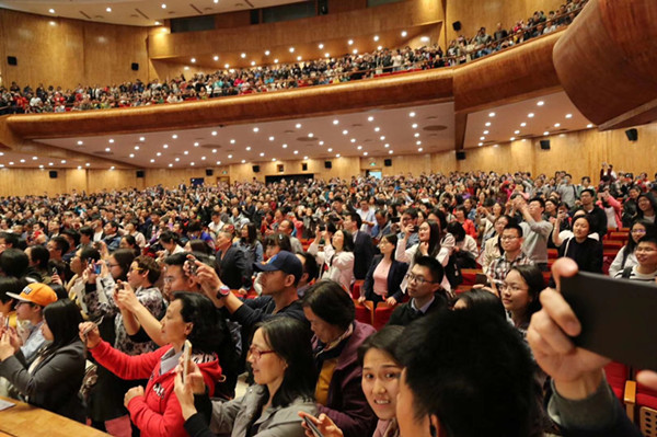 4月26日晚,庆祝北京京剧院建院40周年北大专场演出,著名京剧表演艺术家迟小秋携程派名剧《锁麟囊》唱响讲堂观众厅,众多戏曲爱好者欢聚一堂,共赏戏曲艺术盛宴。