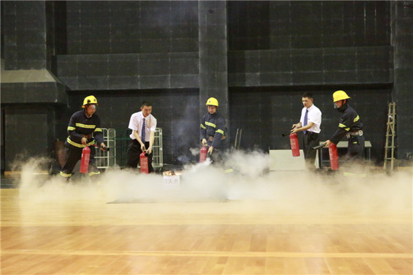 讲堂干部员工与部分学生志愿者参与消防安全演练