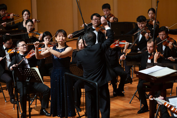 音乐会以沙米娜德的《D大调长笛协奏曲》开场,该作品是长笛作品的代表和经典之作,其背后的爱情挽歌尤为动人,极具浪漫主义色彩。演奏家倪一珍以长笛生动地捕捉主人公内心的起伏,优美又富有激情的旋律深深地吸引着听众们。随后中提琴演奏家刘子正上演了威廉·沃尔顿的《中提琴协奏曲》,该作品是20世纪中提琴作品的经典之作,被视为中提琴三大协奏曲之一。全曲分为三个乐章,各具特色,令人回味无穷。