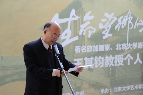 由北京大学国际合作部主办、北京大学艺术学院承办的“生命望乡的行吟——著名旅加画家、北京大学海外访问学者王其钧教授个人绘画展”,于2016年10月23日至10月27日在北京大学百周年纪念讲堂展出。画展开幕式于23日上午9时许举行,由画展策展人、北京大学艺术学院教授向勇担任主持人。北京大学常务副校长吴志攀,中央美术学院党委副书记王少军,著名美术理论家、国画家邵大箴,以及画家王其钧教授本人先后对此次展出进行致辞。