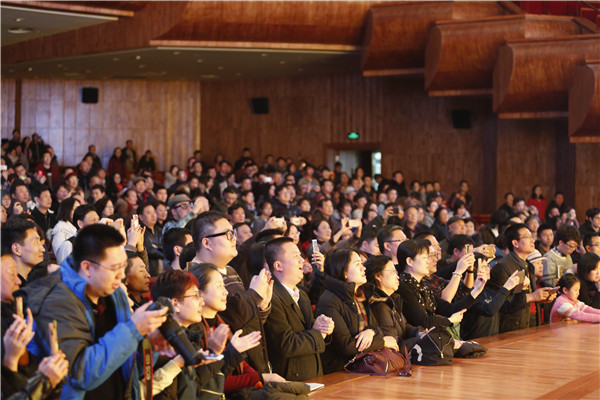 行云流水的唱腔和生动传情的表演感染了在场的观众,演出在热烈的掌声和叫好声中落下帷幕。现场观众仍不舍离场,张建峰再次登台,他讲到,选择《白帝城》为最后一场的原因是为了纪念师祖奚啸伯先生故去四十周年,临近新春,他加唱了名段《三家店》来答谢热情的观众。