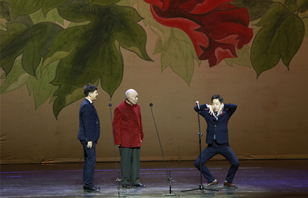 相声名家李增瑞携青年相声演员董建春、李丁为观众带来了一段群口相声。三位演员的表演收放自如,轻松自若,段子此起彼落,包袱掷地有声,其中不仅有三人分饰眼睛、耳朵、嘴巴的生动对话,让观众在欢笑中重温经典,也有英文、流行歌曲、人气游戏等时尚元素的巧妙融入,更能引起观众共鸣。