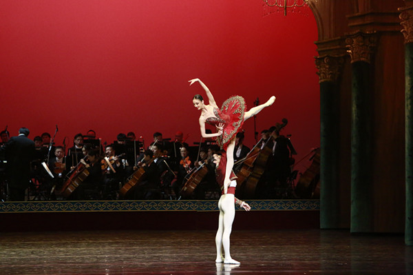 演出以芭蕾舞剧《灰姑娘》第二幕的一段《华尔兹舞》开场,这部闻名遐迩的芭蕾佳作于去年首度与观众见面,收获了广泛好评。随后的《四季》套曲选段《二月:狂欢节》表现了节日欢腾热烈的景象,颇为应景。选自经典芭蕾舞剧《堂吉诃德》的《婚礼双人舞》将芭蕾舞与西班牙风情完美结合,值得一提的是,献上演出的两位舞者刚于去年斩获第11届美国国际芭蕾舞比赛最高奖项。上半场演出以芭蕾舞剧《阿莱城的姑娘》作结,这部曾于2005年在北大首演的作品再次与观众见面,随着男舞者高难度的飞身一跃,台下爆发了热烈的掌声。