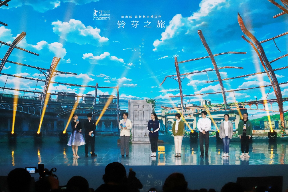 电影《铃芽之旅》讲述了少女铃芽与寻找“门”的少年草太宿命般地相遇,共同踏上关闭灾难之门的冒险故事,一路上风雨兼程、温情相伴,铃芽最终拯救了世界也拯救了自己喜欢的人。除了细腻的感情描绘之外,影片也凝结了导演十年来对灾难、自然、社会等方面的深刻思考。《铃芽之旅》在日本上映后收获不俗票房,获得第40届日本电影学院奖最佳导演奖等多个重要奖项,已入围第73届柏林国际电影节主竞赛单元,将于3月24日在中国内地上映。