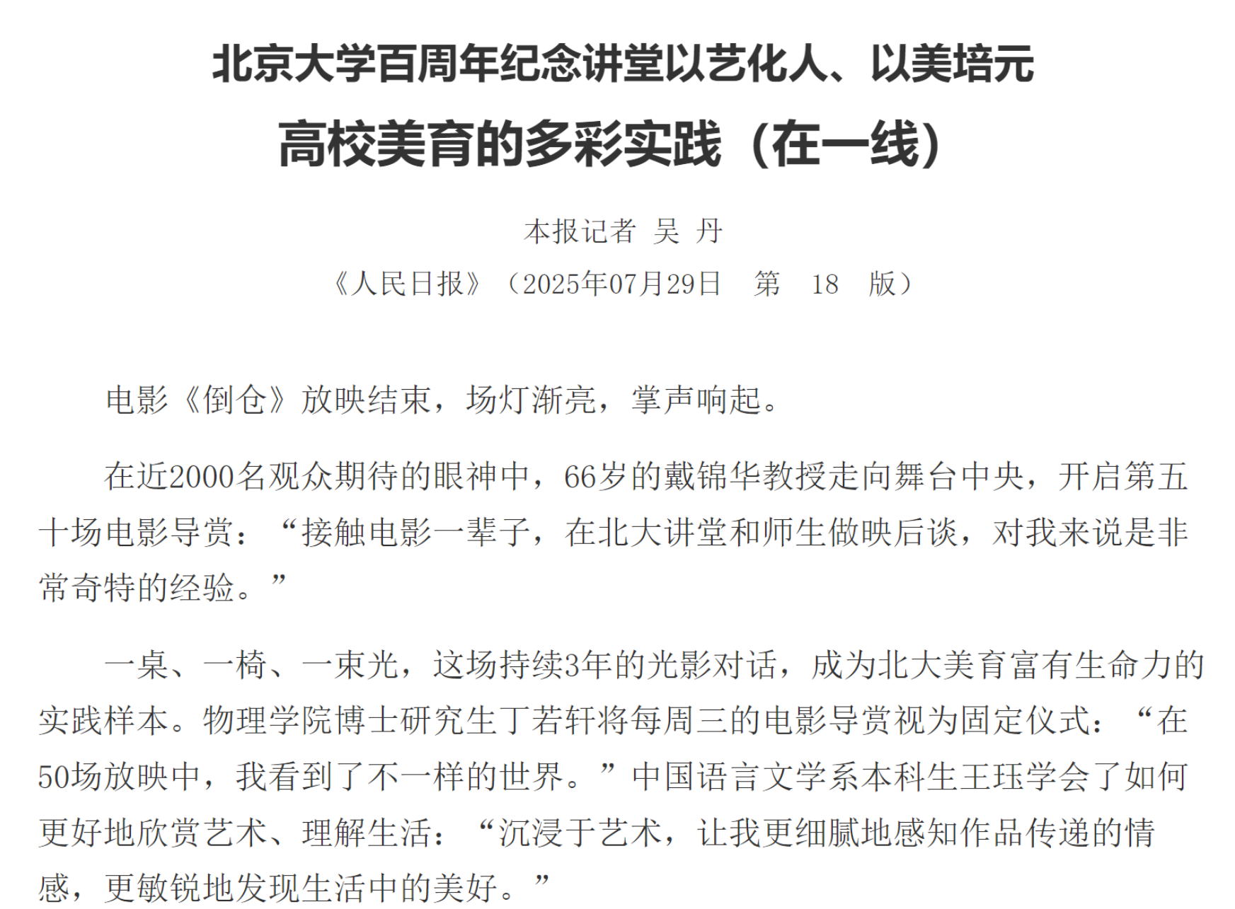 2025年人民日报以“高校美育的多彩实践”为题报道讲堂