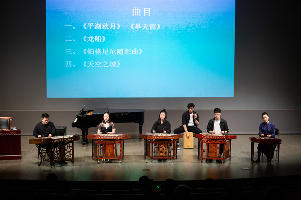 李玲玲教授精彩的讲解激发了观众对扬琴的兴趣,在提问环节同学们针对自己感兴趣的问题与李玲玲教授进行了互动交流。讲座最后,李玲玲教授携手中国音乐学院的同学用扬琴向大家演奏了《平湖秋月》《帕格尼尼随想曲》《天空之城》等中外不同风格的乐曲,默契的配合、精彩的演奏展示了扬琴多姿多彩的艺术魅力,引得全场阵阵掌声。