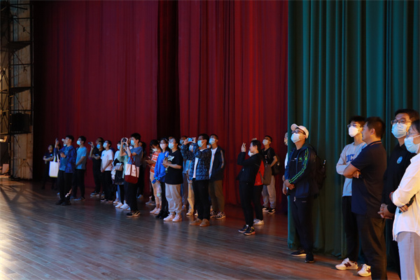 在李莹厅,由讲堂精心制作的宣传片讲述了讲堂的历史发展与作为红色讲堂、艺术讲堂、学术讲堂、青春讲堂的多重角色。跟随讲堂学生志愿者的带领,同学们依次参观了讲堂咖啡厅、排练厅、化妆间、202会议室、舞台后区、纪念大厅等场地,领略了讲堂不为人知的“背后”一面。在观众厅,不同幕布、反声板、吊杆的设置为不同类型演出提供多样化的场景;红色幕布徐徐拉开,仿佛为同学们打开了一扇时空之门——舞台前区升降变化多样,既可成水平状态,为表演提供更大的空间,还可以下沉作为交响乐乐池,容纳百人乐团。在放映室,数字调音台的无缝对接、精妙程序下的舞台灯光操控等,在讲堂舞台技术老师的讲解和演示中一一呈现,让同学们连连称奇。活动最后特别设置了游戏互动环节:同学们通过传声筒小游戏,了解了对讲机的使用方法,体验讲堂学生志愿者们的日常工作。