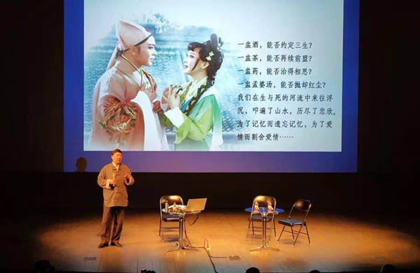 当晚的艺术课堂首先张弘老师对具有“太湖一枝梅”之称的锡剧这一独特的地方剧种进行介绍,并讲述了自己与锡剧的情感渊源,着重介绍了《一盅缘》的剧情发展及故事源头与改编情况,使观众对于这一剧目有了基本的认识。