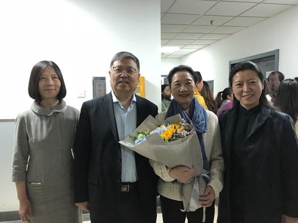 会议中心副主任、百周年纪念讲堂刘寿安主任(左二) 中国乐派高精尖创新中心秘书长王萃(右一)祝贺讲座圆满成功