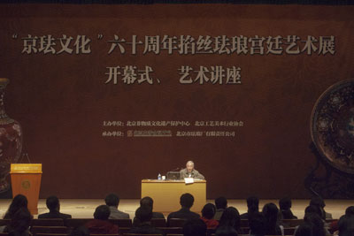 “艺术课堂”作为讲堂以艺术教育普及,配合学校提升学生综合素质为目的的“滴灌工程”,多年来通过邀请知名学者,开展各类艺术讲座及普及活动,广泛而深入地传播文化和艺术知识,深受广大师生好评。10月24日上午,“京珐文化”六十周年掐丝珐琅宫廷艺术展开幕式以艺术课堂形式在百周年纪念讲堂多功能厅举办。开幕式由北京大学考古文博学院宋向光教授主持,中国工艺美术协会秘书长宋印伟先生,北京市珐琅厂总经理、中国工艺美术大师钟连盛先生,会议中心副主任、讲堂管理部刘寿安主任以及北大、清华校友会代表和广大师生观众共同出席。